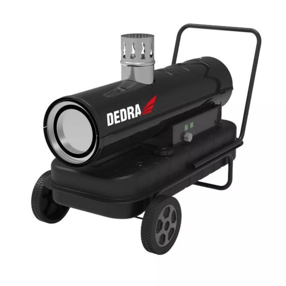 Nagrzewnica DED9955BTK jest wyposażona w komin do odprowadzania spalin, dzięki temu ogrzane powietrze jest czyste i pozbawione zanieczyszczeń. Komora spalania wykonana została ze stali nierdzewnej, co gwarantuje nie tylko trwałość, ale także odporność na korozję, a obudowa nie nagrzewa się nawet podczas długiego czasu pracy. W celu zwiększenia bezpieczeństwa użytkowania nagrzewnica olejowa posiada zabezpieczenie termiczne, odcinające zasilanie w przypadku przegrzania, wypalenia się paliwa czy wygaśnięciu płomienia.